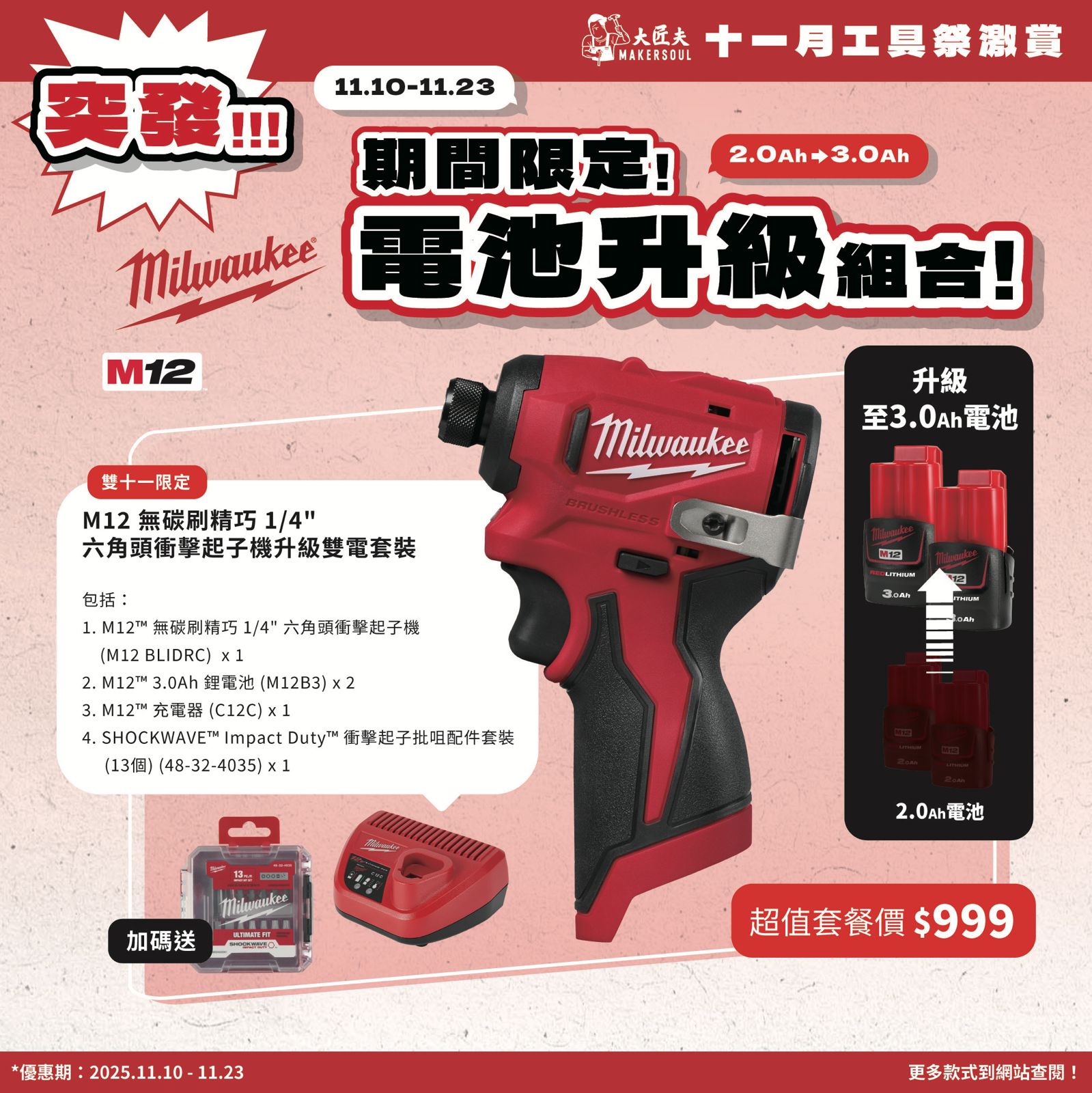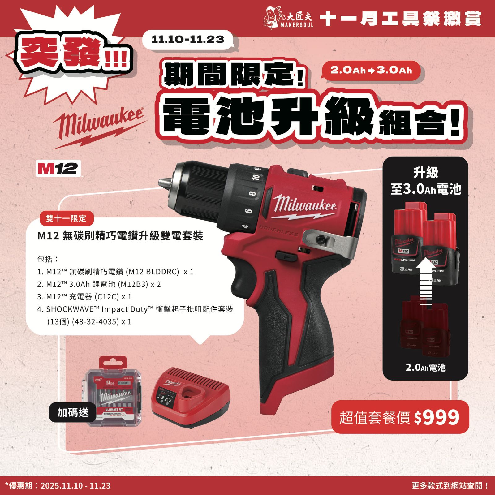 Milwaukee 快閃優惠 (11月10至11月23日)