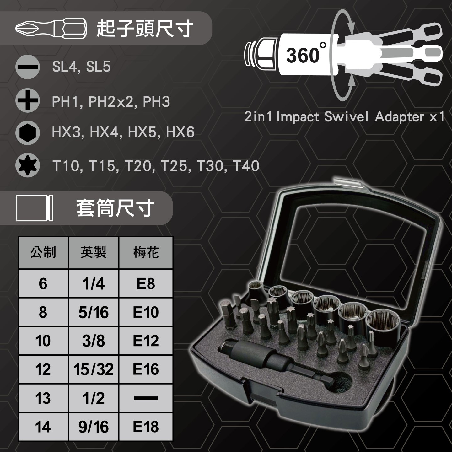 - 多功能套筒 公制 英製 滑牙螺絲 梅花螺絲 / 套筒可對應尺寸