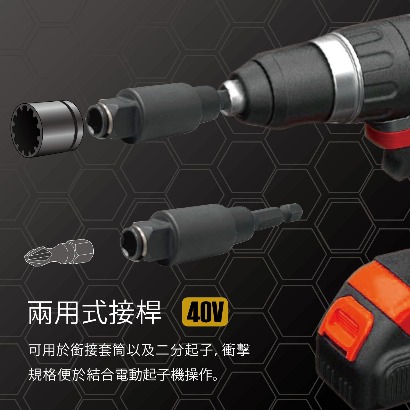 - 兩用式接桿 (起子頭 & 套筒)