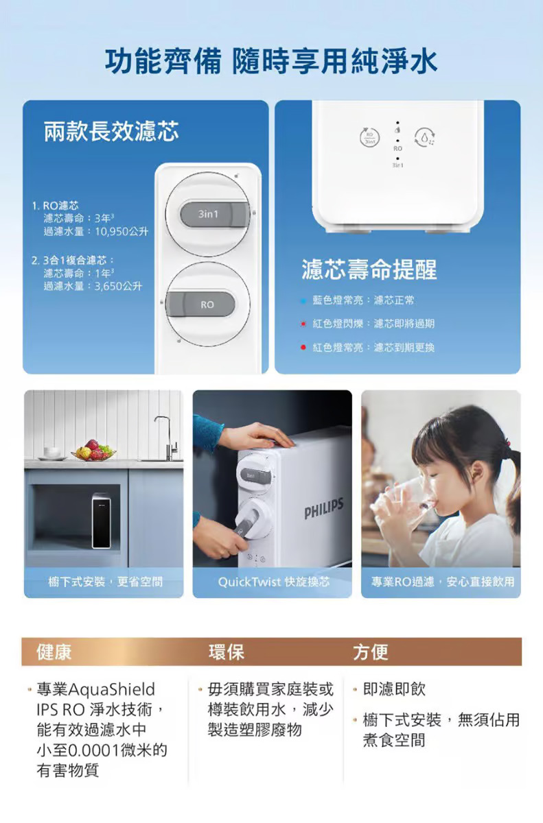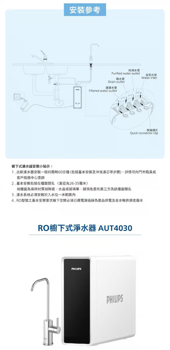 - Philips 飛利浦 AUT4030R600/90 櫥下型濾水器 (香港官方行貨)