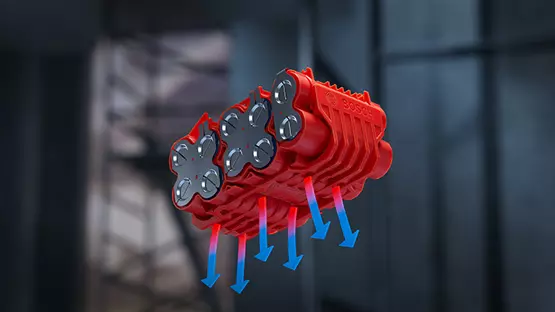 先進的熱管理可減少內部熱量,延長電池壽命。將熱量從電池中排出,即使在要求嚴苛的使用過程中也能保持更低的溫度。所以能提供更卓越的性能和更少的停機時間,非常適合最嚴苛的應用。