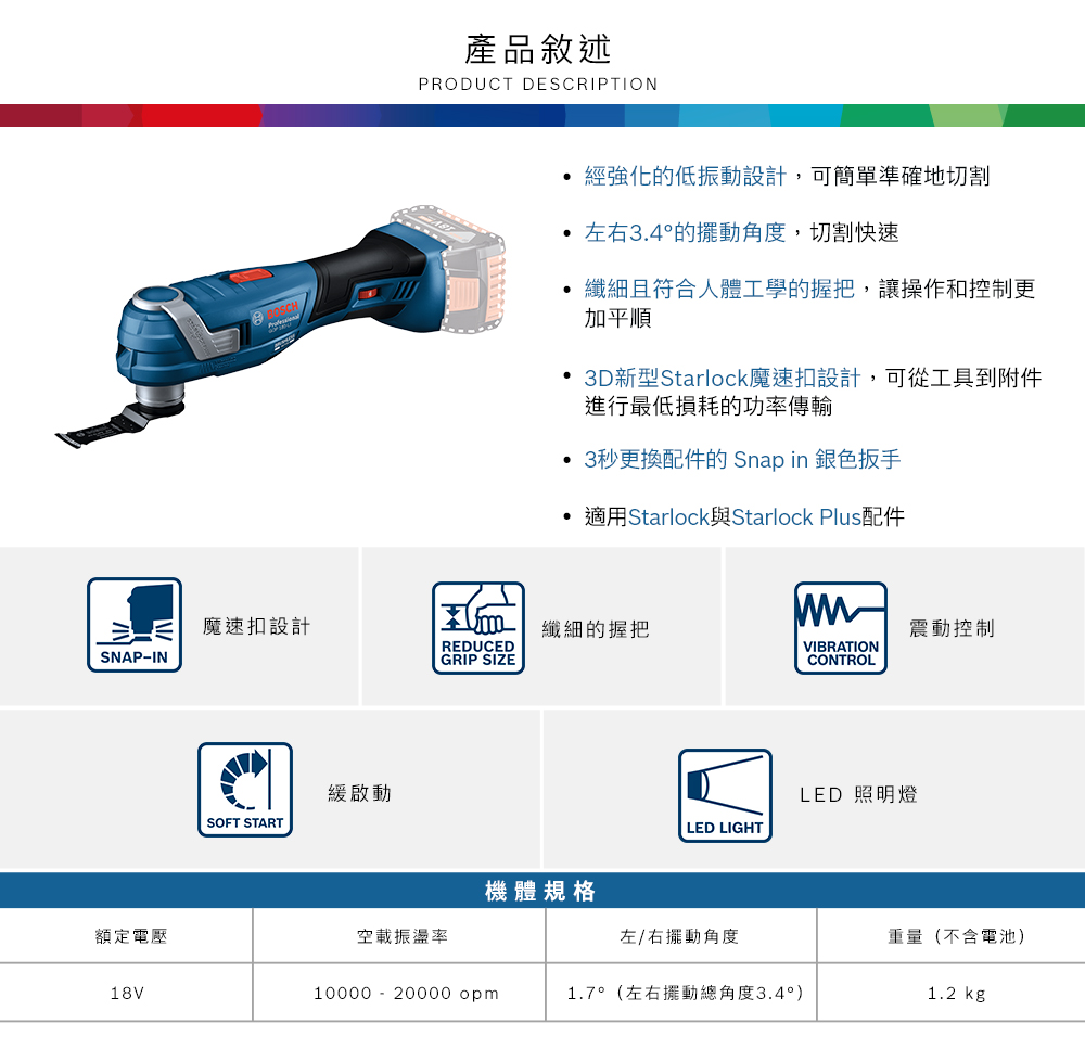 BOSCH 博世 18V 充電式多功能切割機 萬用寶 GOP 185 (3.0雙電套裝)