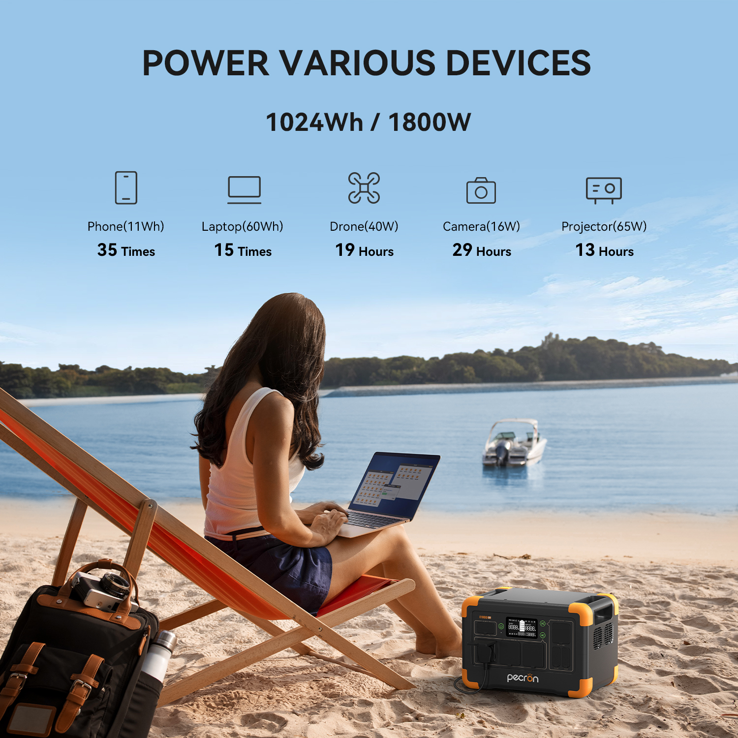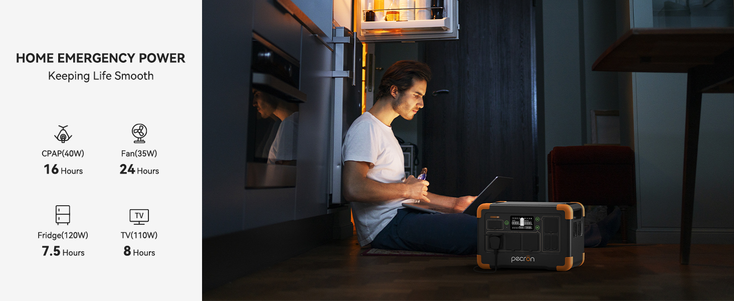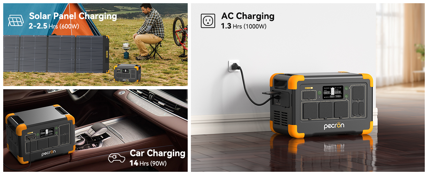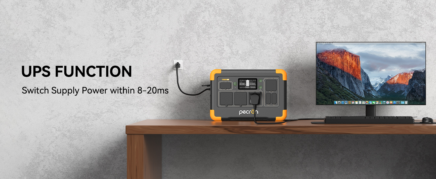 Pecron E1000LFP 擁有 1800 瓦的出色負載能力,並支援 1000W 超級快充。它能夠滿足日常戶外和家庭緊急使用需求,其緊湊的設計也便於攜帶。即使您在上班途中,也可以透過 Wi-Fi 遠端控制 E1000LFP 行動電源!