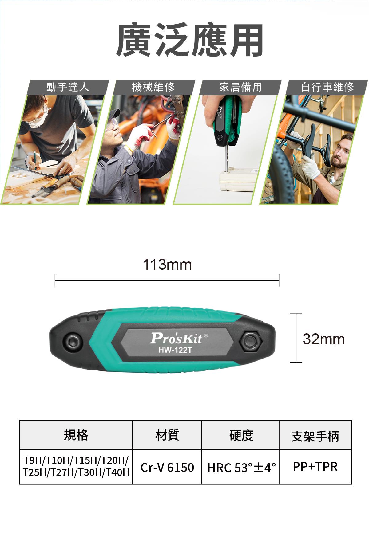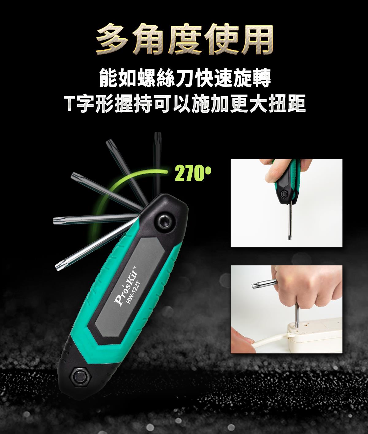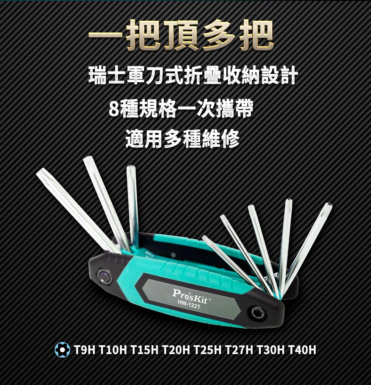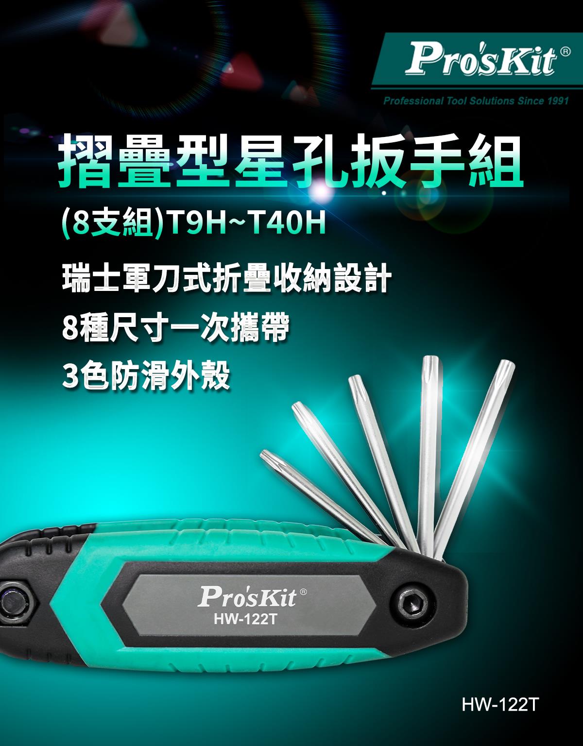 • Pro'sKit 寶工摺疊型星孔扳手組(8支組)T9H~T40H HW-122T