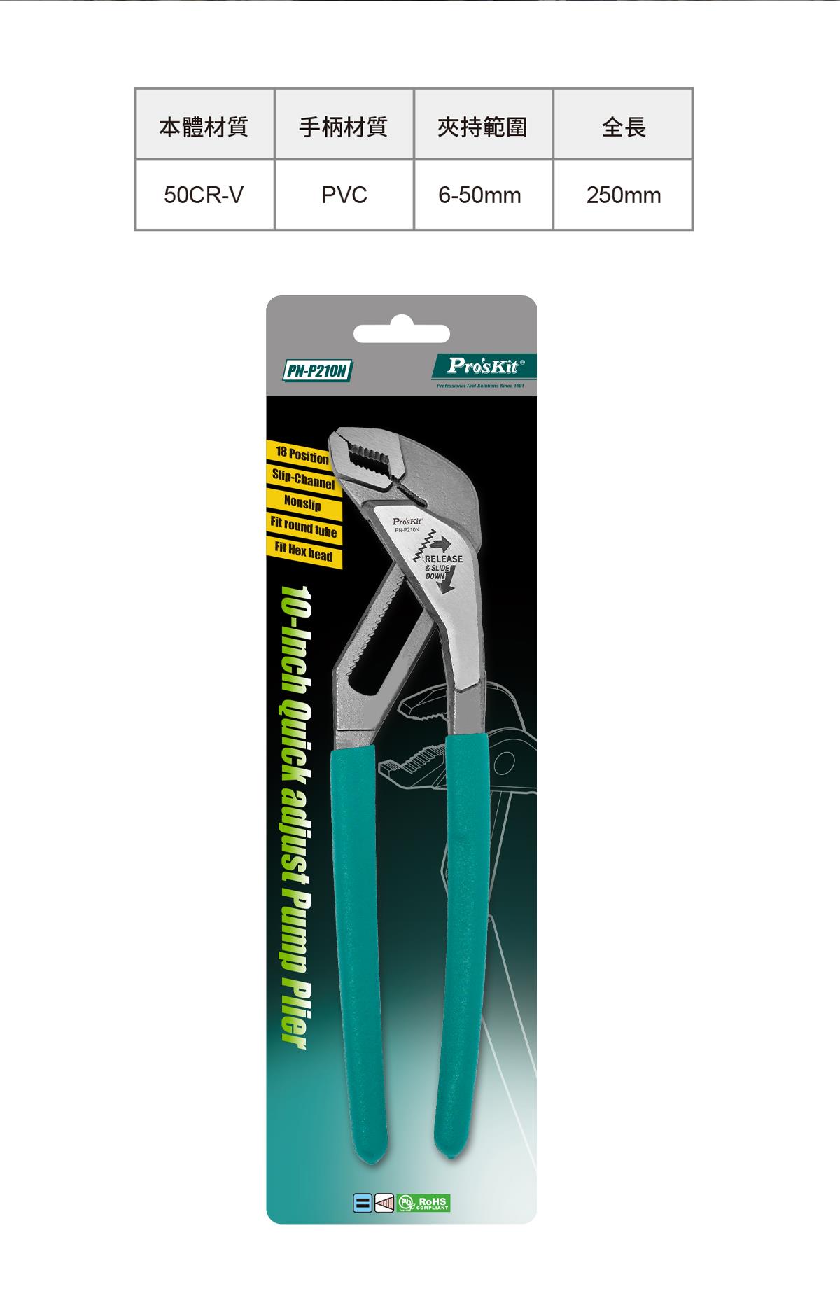 • Pro’skit 寶工 10吋快調式水管鉗 PN-P210N