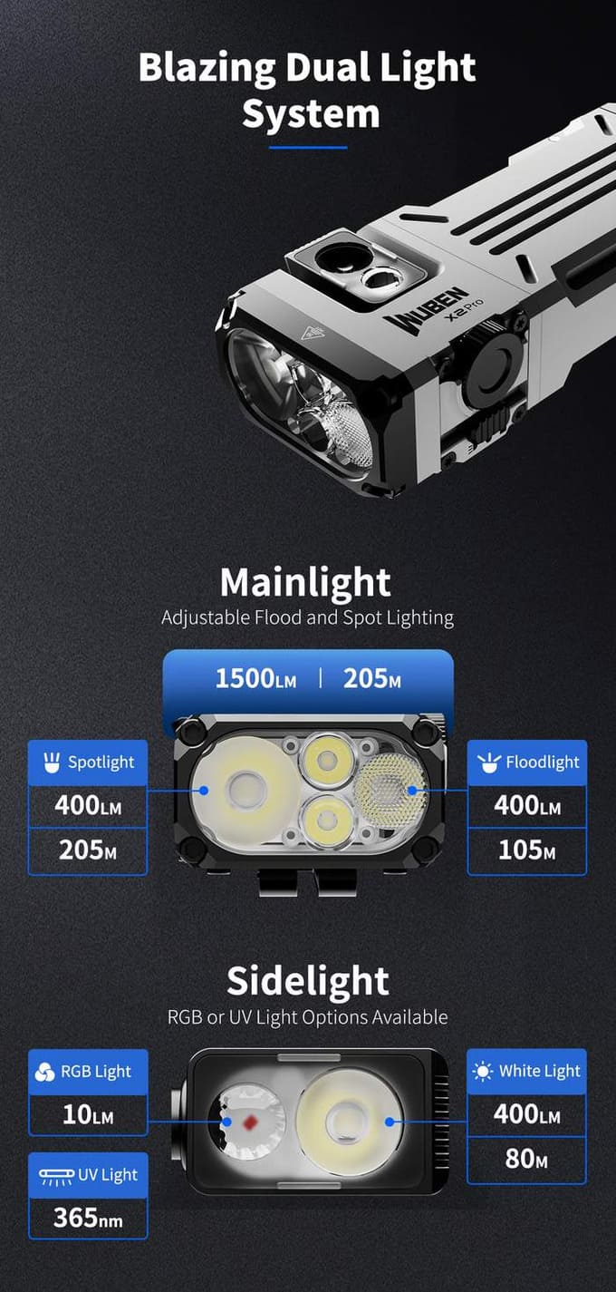 WUBEN X2 Pro 1500流明高亮便攜手電筒 (RGB版)